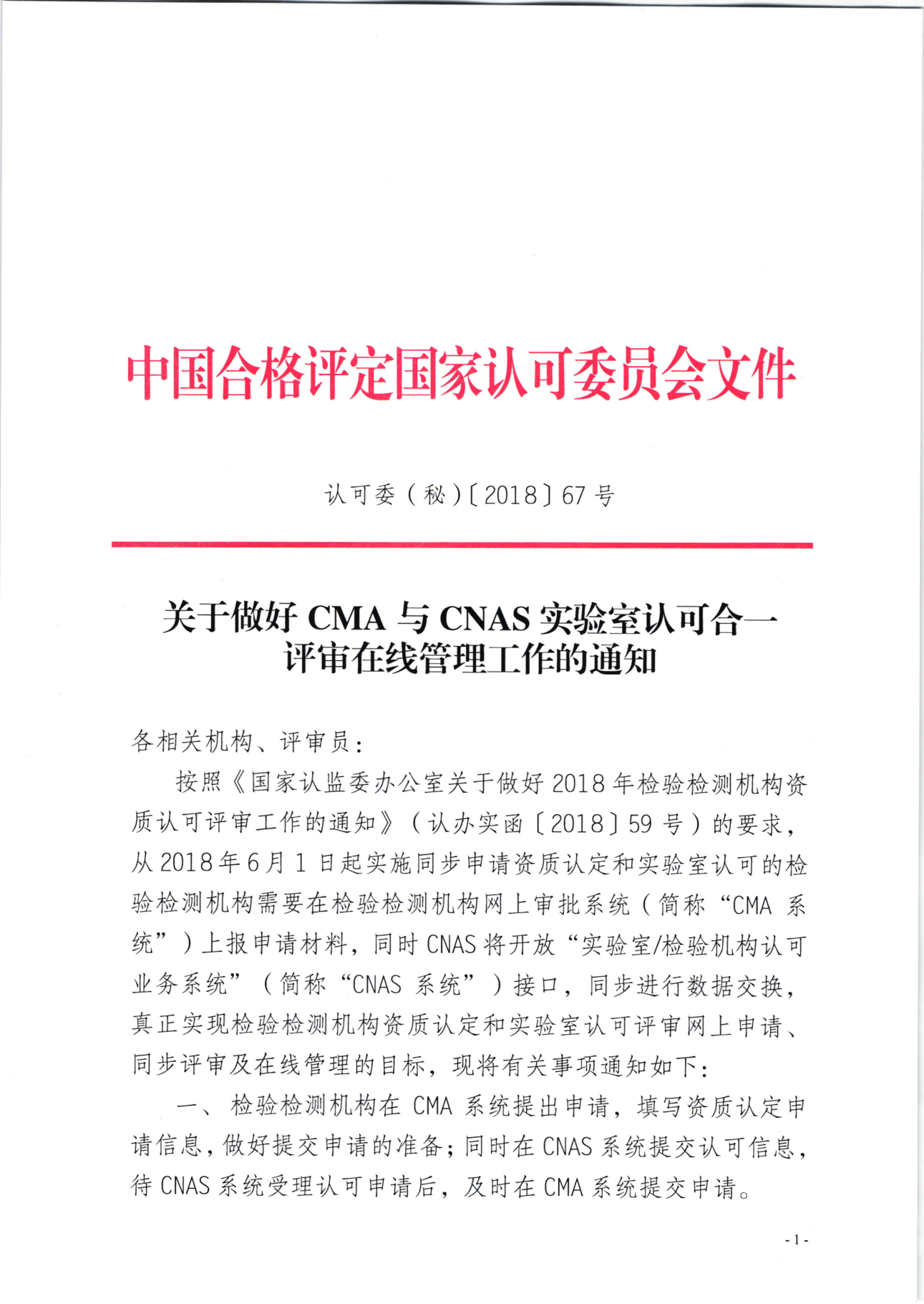 萬眾期待的二合一評審在線管理終于實現(xiàn)啦!2018年5月30日,中國合格評定國家認可委員會秘書處正式印發(fā)了《關(guān)于做好CMA與CNAS實驗室認可合一評審在線管理工作的通知》(認可委(秘)[2018]67號)。該《通知》明確了從2018年6月1日起實施檢驗檢測機構(gòu)資質(zhì)認定和實驗室認可評審?fù)骄W(wǎng)上申請、同步評審及在線管理。