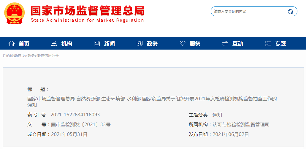 2021年度檢驗(yàn)檢測(cè)機(jī)構(gòu)監(jiān)督抽查工作通知