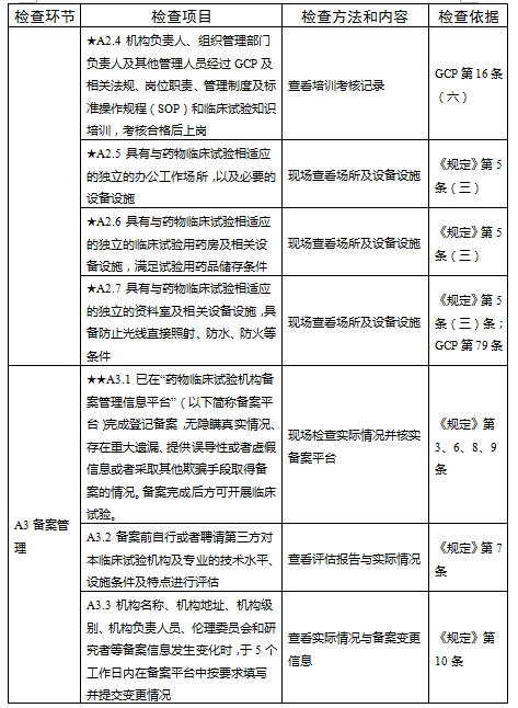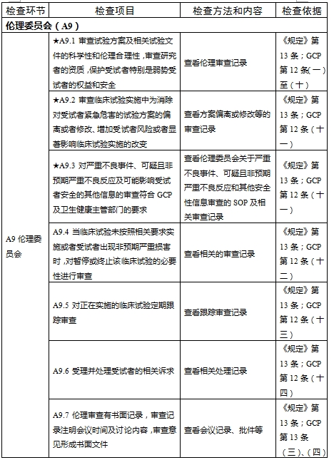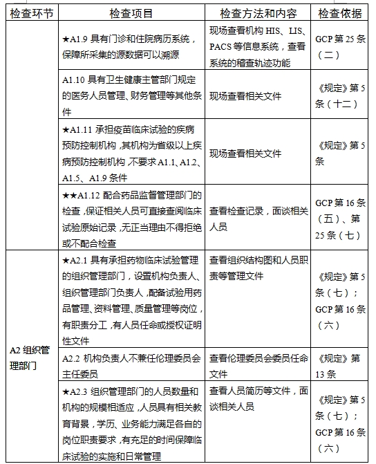 檢查要點共16個檢查環(huán)節(jié)、109個檢查項目,分為機構(gòu)和臨床試驗專業(yè)(以下簡稱專業(yè))2個部分,包含對資質(zhì)條件與備案、運行管理等方面的現(xiàn)場檢查內(nèi)容。檢查項目中關鍵項目共計9項(標示為“★★”),主要項目共計51項(標示為“★”),一般項目共計49項。