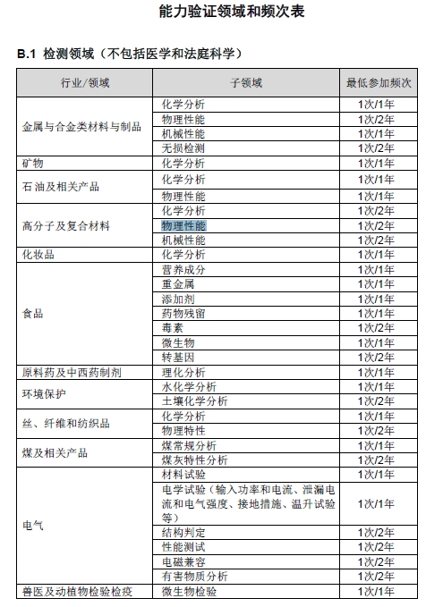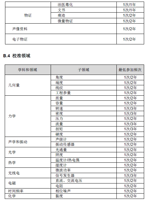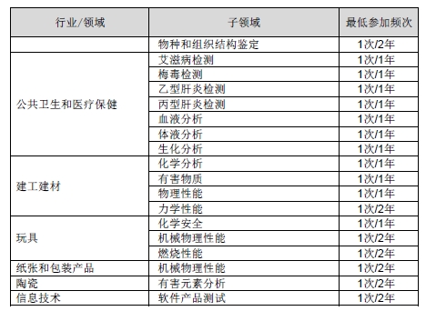 8) 復評審和監(jiān)督評審:只要存在可獲得的能力驗證,獲準認可合格評定機構參加能力驗證的領域和頻次應滿足CNAS-RL02附錄B的要求。對CNAS能力驗證領域和頻次表中未列入的領域(子領域),只要存在可獲得的能力驗證,鼓勵獲準認可合格評定機構積極參加