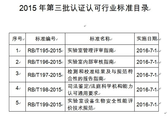 重磅:國家認監(jiān)委發(fā)布2015年第三批5項認證認可行業(yè)標準