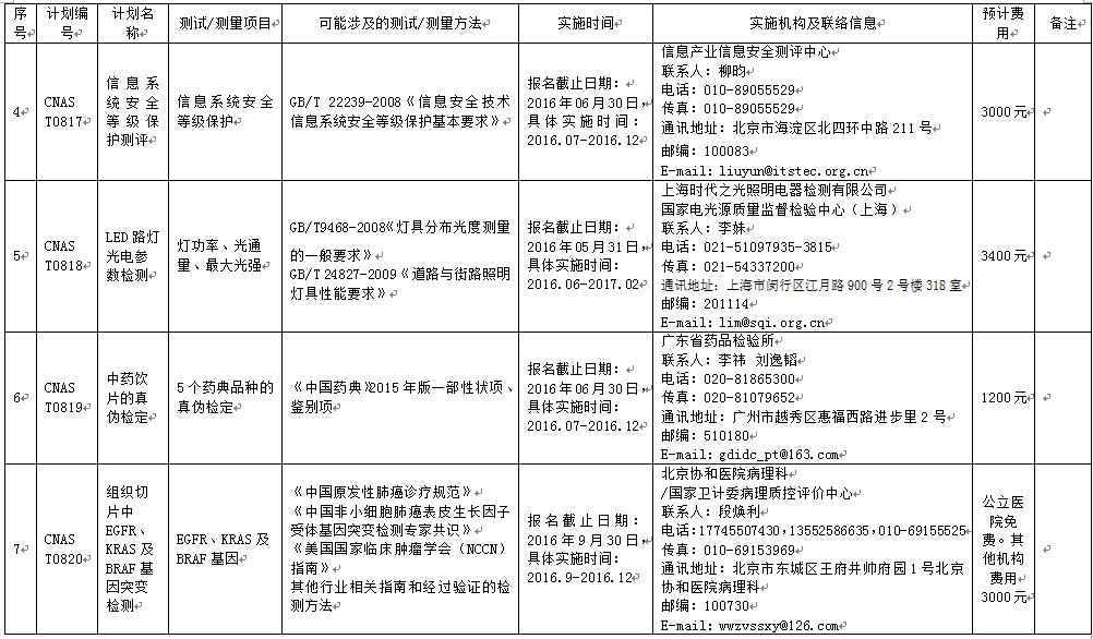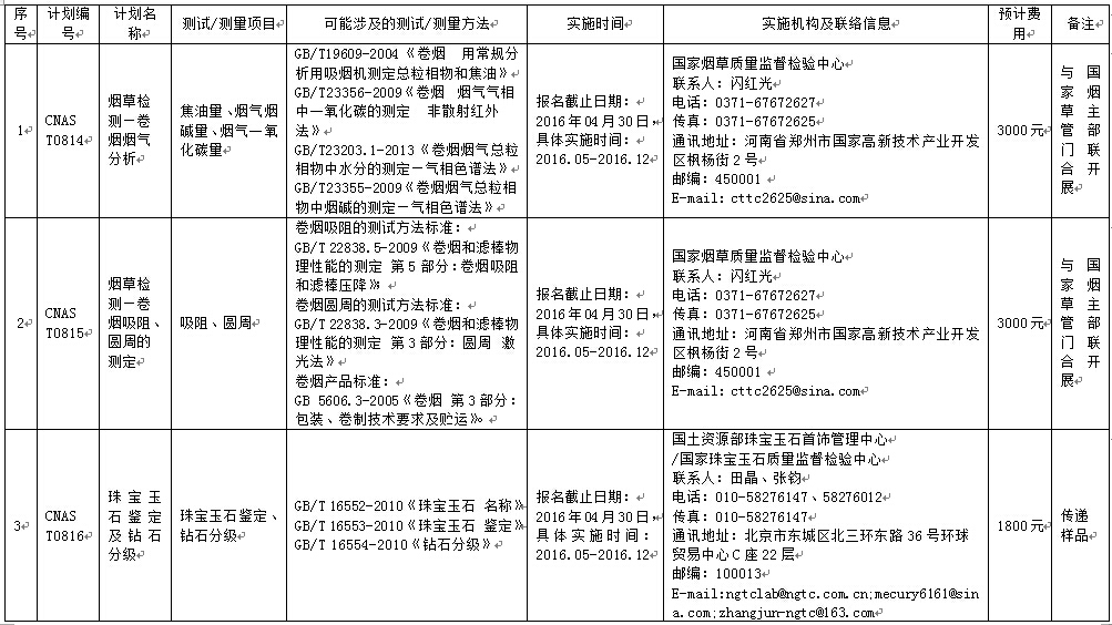 CNAS 2016年度第一批能力驗(yàn)證計(jì)劃目錄