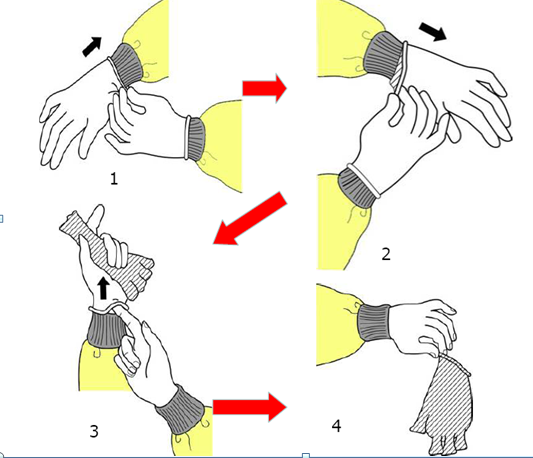 1)戴手套的手避免觸摸鼻子、面部和避免觸摸或調(diào)整其他個(gè)人防護(hù)裝備(如眼鏡等)