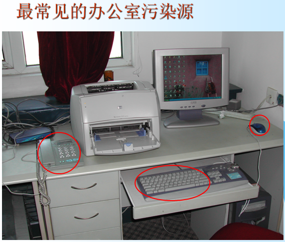5)留意辦公污染!!!, 不可直接帶接觸過(guò)病原的手套直接接觸鍵盤(pán),鼠標(biāo)、傳真等辦公設(shè)備.
