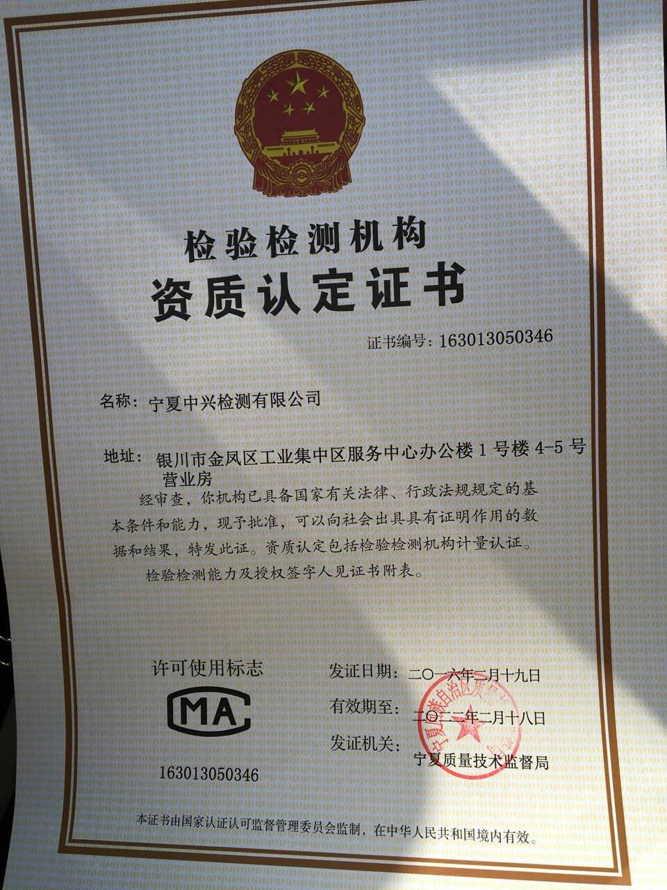 喜報(bào):祝賀寧夏中興檢測(cè)有限公司獲取CMA資質(zhì)認(rèn)定證書!??!