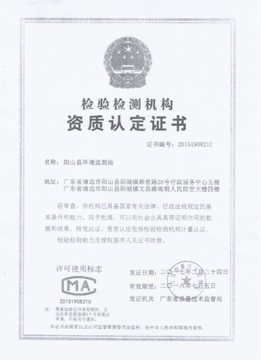 2017年1月,經(jīng)深圳市迪瑞科特管理咨詢有限公司輔導(dǎo)的陽(yáng)山縣環(huán)境監(jiān)測(cè)站順利通過了廣東省質(zhì)量技術(shù)監(jiān)督局委派的評(píng)審組的現(xiàn)場(chǎng)評(píng)審考核,并于2017年3月獲取了檢驗(yàn)檢測(cè)機(jī)構(gòu)資質(zhì)認(rèn)定證書!