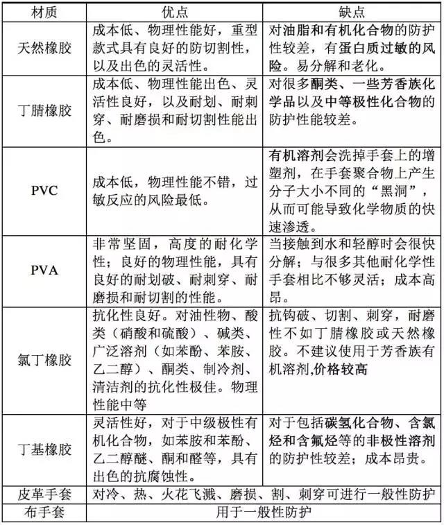 表 1 各種手套的優(yōu)缺點(diǎn)