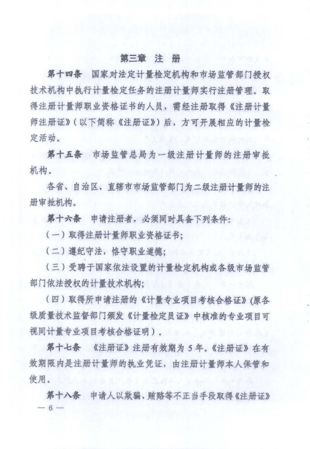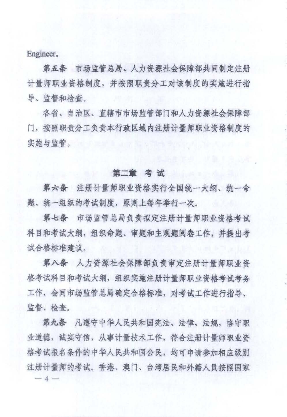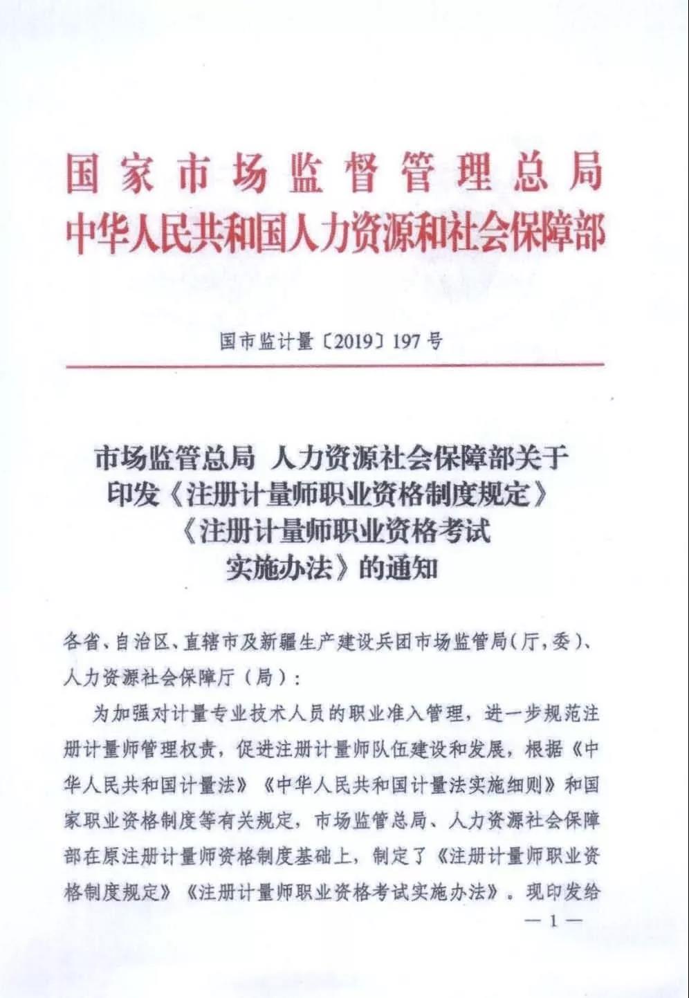 國(guó)家市場(chǎng)監(jiān)管總局 人力資源和社會(huì)保障部關(guān)于印發(fā)《注冊(cè)計(jì)量師職業(yè)資格制度規(guī)定》《注冊(cè)計(jì)量師職業(yè)資格考試實(shí)施辦法》的通知