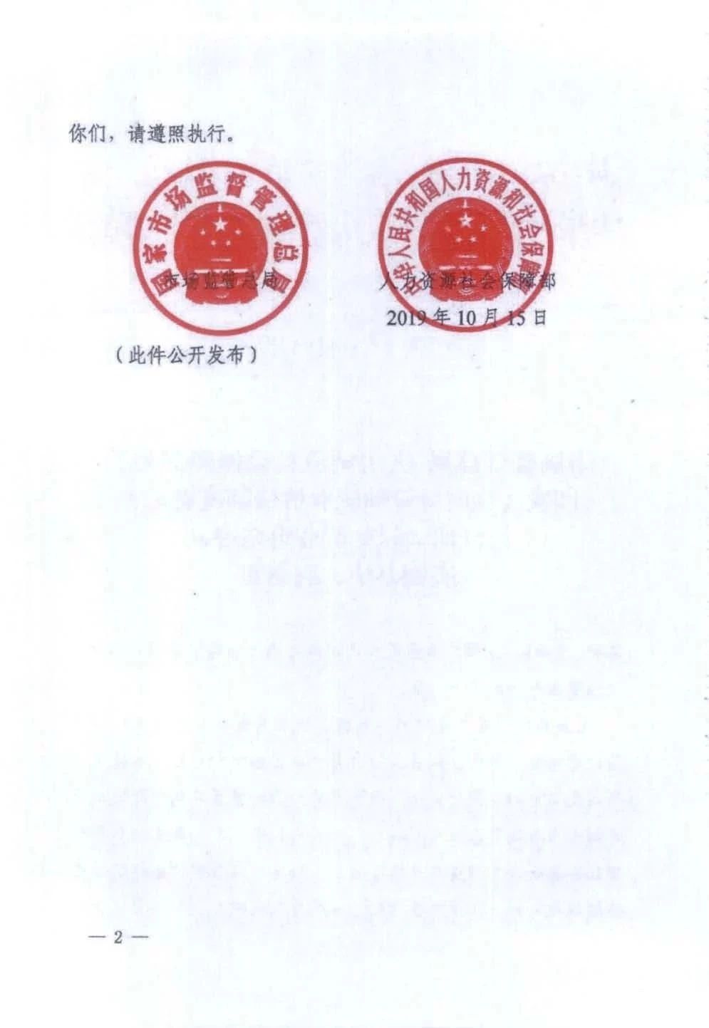 2019年10月15日,國(guó)家市場(chǎng)監(jiān)管總局 人力資源和社會(huì)保障部