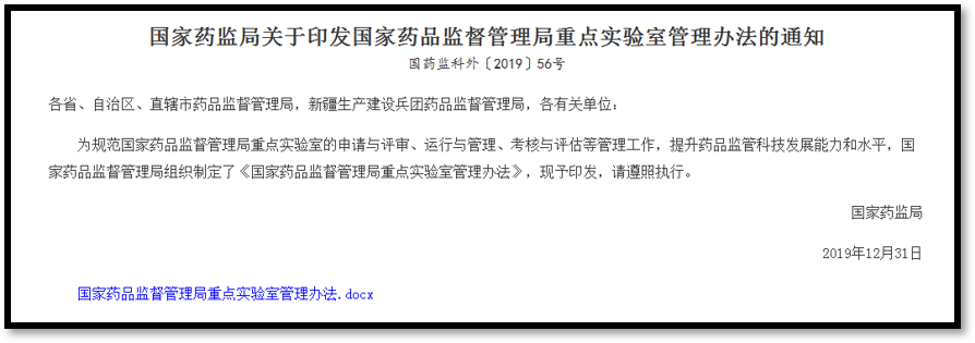 《國(guó)家藥品監(jiān)督管理局重點(diǎn)實(shí)驗(yàn)室管理辦法》(國(guó)藥監(jiān)科外[2019]56號(hào),以下簡(jiǎn)稱(chēng)《辦法》),規(guī)范了國(guó)家藥品監(jiān)督管理局藥品(含藥品、醫(yī)療器械、化妝品)重點(diǎn)實(shí)驗(yàn)室(以下簡(jiǎn)稱(chēng)重點(diǎn)實(shí)驗(yàn)室)的申請(qǐng)與評(píng)審、運(yùn)行與管理、考核與評(píng)估等方面的工作,《辦法》多處涉及檢驗(yàn)檢測(cè)機(jī)構(gòu)。小迪依據(jù)《辦法》對(duì)重點(diǎn)實(shí)驗(yàn)室的建立、人員要求、申請(qǐng)、評(píng)審、運(yùn)行管理和評(píng)估等內(nèi)容進(jìn)行精簡(jiǎn)梳理,我們來(lái)看一下: