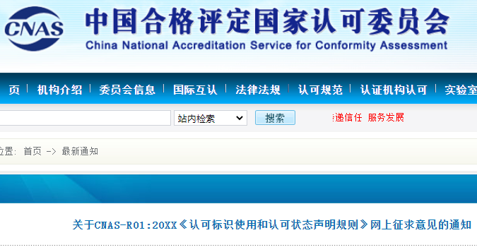 中國合格評定國家認可委員會(CNAS)組織修訂了CNAS-R01:20XX《認可標識使用和認可狀態(tài)聲明規(guī)則》。目前已完成文件征求意見稿,現(xiàn)于網(wǎng)上公示征求意見。