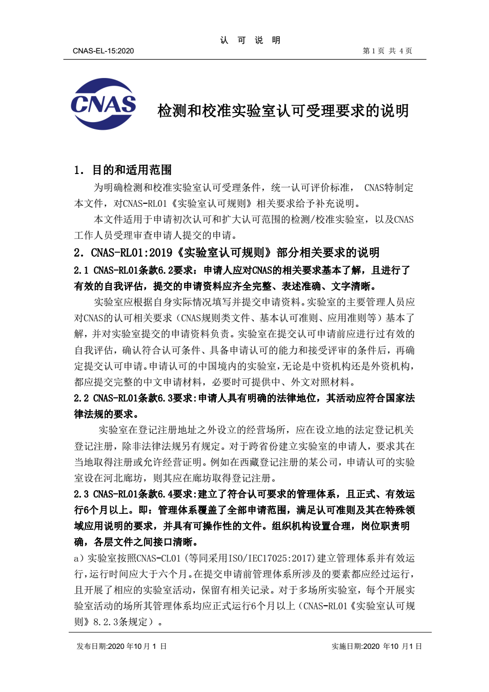 CNAS發(fā)布|檢測和校準實驗室認可受理要求