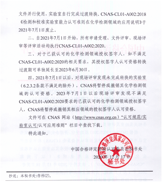 1、 CNAS-CL01-A002:2020《檢測和校準實驗室能力認可準則在化學(xué)檢測領(lǐng)域的應(yīng)用說明》;