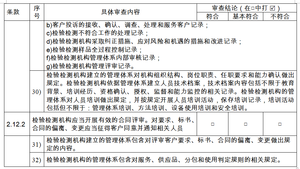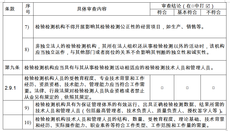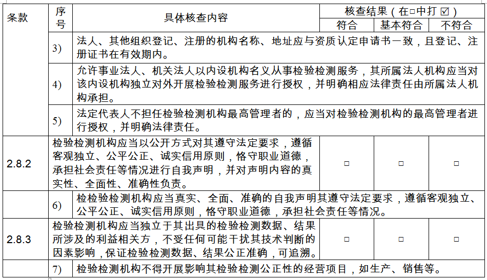 a.審查檢驗(yàn)檢測(cè)機(jī)構(gòu)的法人地位證明材料,審核其經(jīng)營(yíng)范圍是否包含檢驗(yàn)檢測(cè)的相關(guān)表述,并符合公正性要求;非獨(dú)立法人檢驗(yàn)檢測(cè)機(jī)構(gòu)是否提供了所在法人單位的授權(quán)文件;