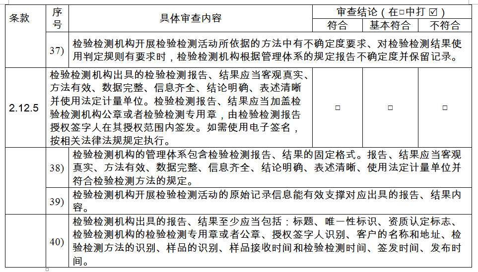 以上評(píng)審內(nèi)容完成后形成評(píng)審報(bào)告,評(píng)審組成員和檢驗(yàn)檢測(cè)機(jī)構(gòu)有關(guān)人員分別在評(píng)審報(bào)告相應(yīng)欄目?jī)?nèi)簽字確認(rèn)。