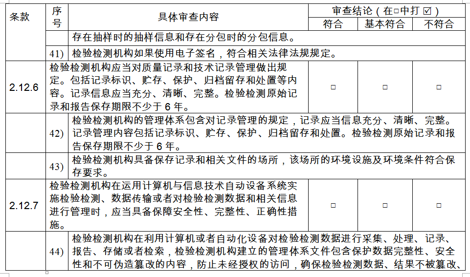 (六)檢驗(yàn)檢測(cè)機(jī)構(gòu)應(yīng)當(dāng)對(duì)質(zhì)量記錄和技術(shù)記錄管理做出規(guī)定。包括記錄標(biāo)識(shí)、貯存、保護(hù)、歸檔留存和處置等內(nèi)容。記錄信息應(yīng)當(dāng)充分、清晰、完整。檢驗(yàn)檢測(cè)原始記錄和報(bào)告保存期限不少于6年。