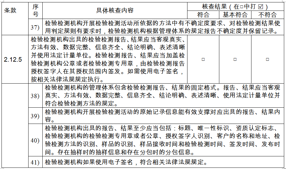 (五)檢驗(yàn)檢測(cè)機(jī)構(gòu)出具的檢驗(yàn)檢測(cè)報(bào)告應(yīng)當(dāng)客觀真實(shí)、方法有效、數(shù)據(jù)完整、信息齊全、結(jié)論明確、表述清晰并使用法定計(jì)量單位。檢驗(yàn)檢測(cè)報(bào)告應(yīng)當(dāng)加蓋檢驗(yàn)檢測(cè)機(jī)構(gòu)公章或者檢驗(yàn)檢測(cè)專用章,由檢驗(yàn)檢測(cè)報(bào)告授權(quán)簽字人在其授權(quán)范圍內(nèi)簽發(fā)。如需使用電子簽名按相關(guān)法律法規(guī)規(guī)定執(zhí)行。