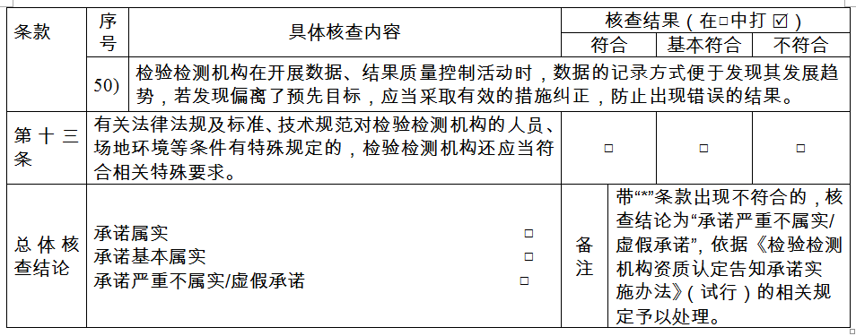 第五條 〔告知承諾現(xiàn)場(chǎng)核查〕依照《檢驗(yàn)檢測(cè)機(jī)構(gòu)資質(zhì)認(rèn)定管理辦法》的相關(guān)規(guī)定,對(duì)于采用告知承諾程序?qū)嵤┵Y質(zhì)認(rèn)定的,對(duì)檢驗(yàn)檢測(cè)機(jī)構(gòu)承諾內(nèi)容是否屬實(shí)進(jìn)行現(xiàn)場(chǎng)核查的內(nèi)容與程序,應(yīng)當(dāng)符合本準(zhǔn)則的相關(guān)規(guī)定。